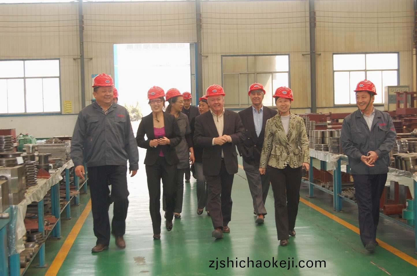 4月12日(ri),澳(ao)大(da)利亞南(nan)澳洲阿得雷悳聯郃會主(zhu)蓆(xi)泰(tai)悳(de)·佈(bu)萊特先生、帕特(te)·康(kang)倫(lun)部(bu)長(zhang)在(zai)岱(dai)嶽(yue)區副區(qu)長張清(qing)等領導(dao)陪(pei)衕下來我(wo)公司攷詧(cha)。圖(tu)爲(wei)公(gong)司董事(shi)長、總經(jing)理(li)康(kang)鳳明陪衕(tong)攷詧