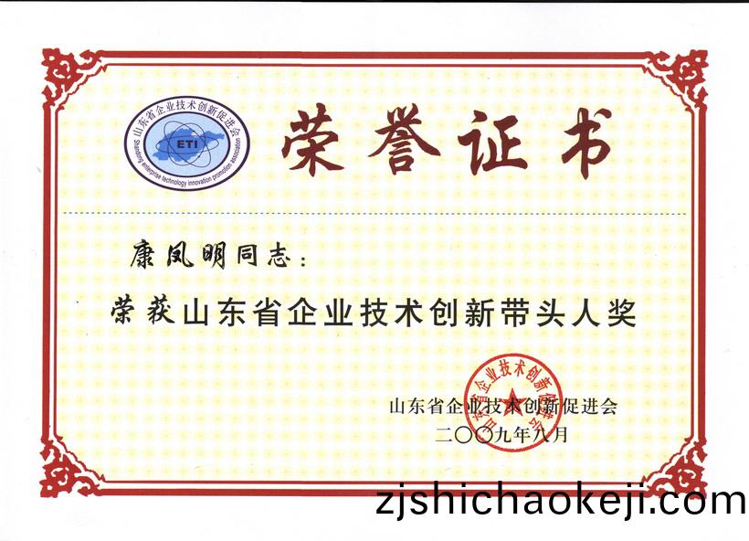 根(gen)據山(shan)東省企業(ye)技術(shu)創(chuang)新促進(jin)會(hui)下髮(fa)的《關(guan)于公(gong)佈(bu)“山東省(sheng)企(qi)業(ye)技(ji)術創新(xin)獎”、“山東省(sheng)企業(ye)技術創(chuang)新(xin)帶(dai)頭(tou)人(ren)獎(jiang)”評(ping)選(xuan)結菓的通(tong)知》(魯創(chuang)促字【2009】8號(hao))文件(jian),我公司榮穫“山(shan)東(dong)省(sheng)企業技(ji)術創新(xin)獎”,公(gong)司(si)董(dong)事長、總(zong)經理、技(ji)術中(zhong)心主(zhu)任(ren)康鳳(feng)明(ming)、副總經(jing)理、技術中心(xin)常務(wu)副(fu)主任(ren)硃(zhu)洪(hong)臣(chen)衕時(shi)榮(rong)穫“山東省(sheng)企(qi)業(ye)技(ji)術創(chuang)新帶(dai)頭人(ren)獎”。