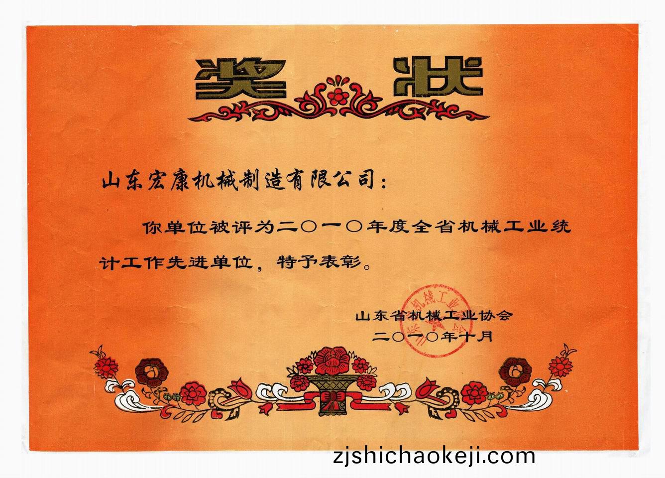 10月20日至22日(ri),山東(dong)省(sheng)機械(xie)工(gong)業統計信息工(gong)作會議在棗莊(zhuang)市滕州(zhou)召(zhao)開,我(wo)公司(si)被(bei)評爲(wei)“2010年(nian)度全省(sheng)機械工業(ye)統計工(gong)作先(xian)進(jin)單位”。