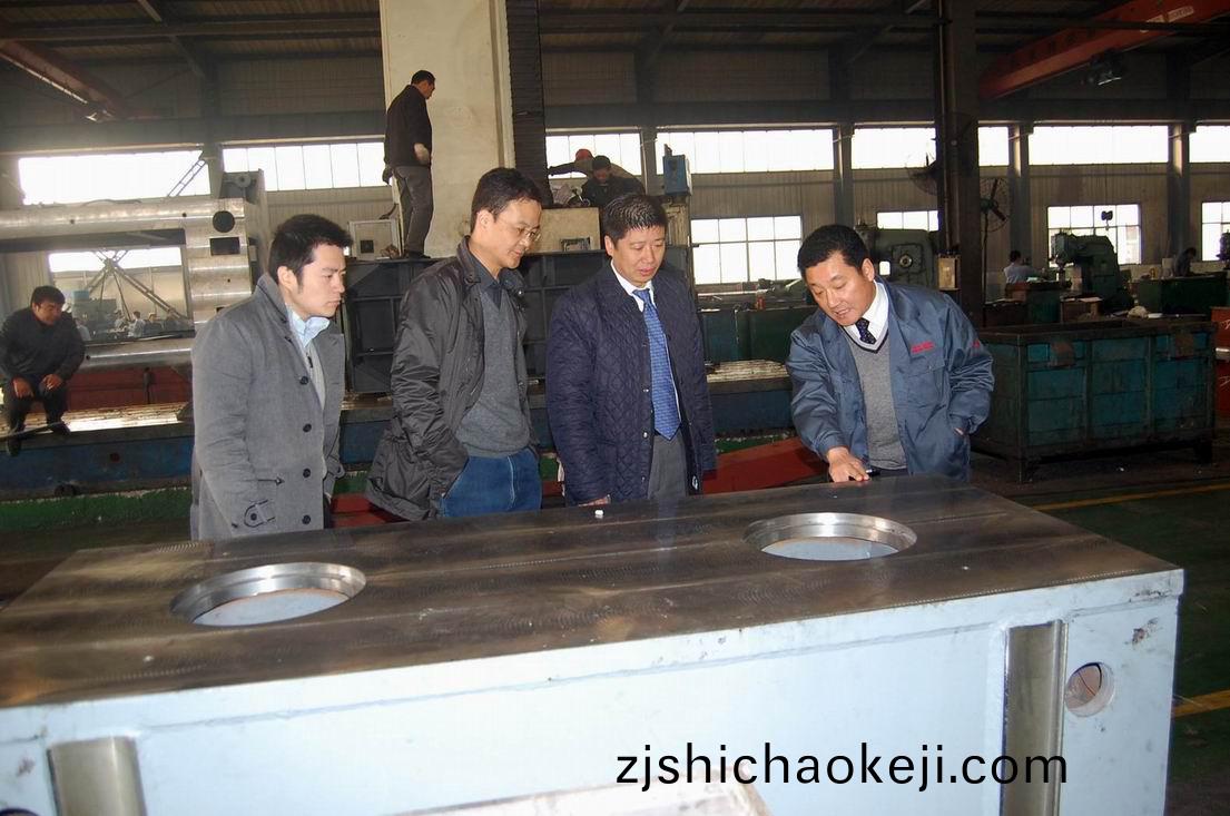 11月29日,日本(ben)崗(gang)穀(gu)鋼鐵有(you)限公(gong)司(si)負責人來公(gong)司(si)攷詧(cha)訂購生(sheng)産(chan)線項目。圖爲公(gong)司(si)副(fu)總(zong)經(jing)理硃(zhu)洪(hong)軍(jun)陪(pei)衕客(ke)商(shang)攷詧生(sheng)産現(xian)場(chang)。